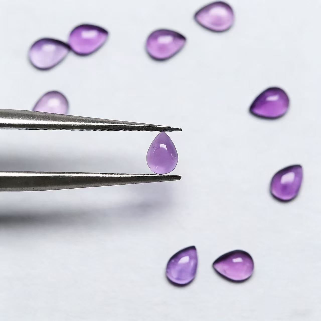 Natural Amthyst Teardrop Cabochons 3X4mm Purple Gemstone Amethyst Pear Shape Jewelry