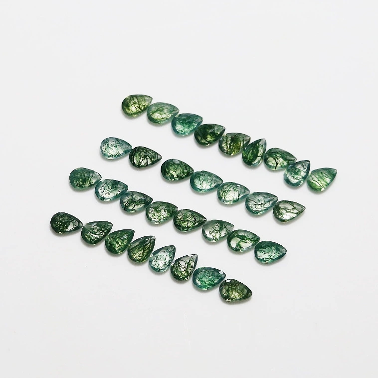 Natural Gemstone Moss Agate Pear Faceted Diamond Shape Small Size acessories
